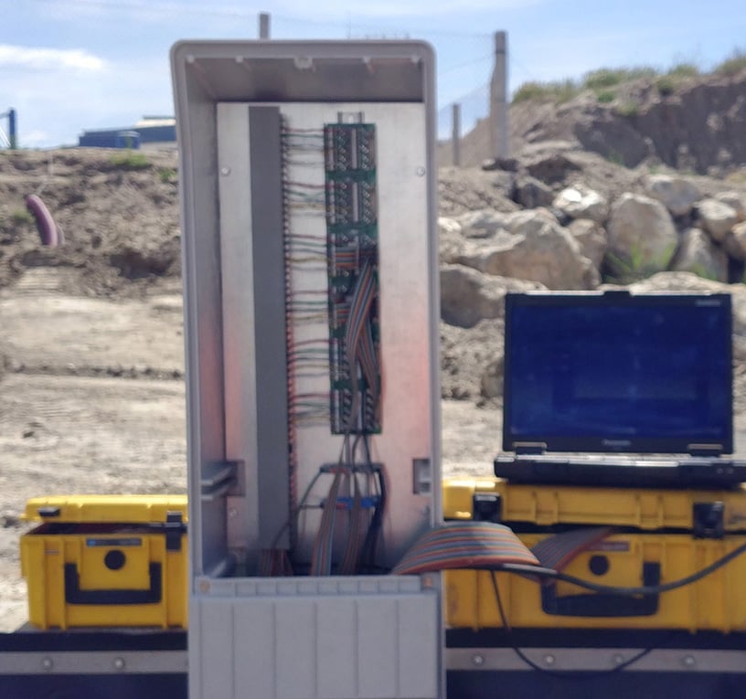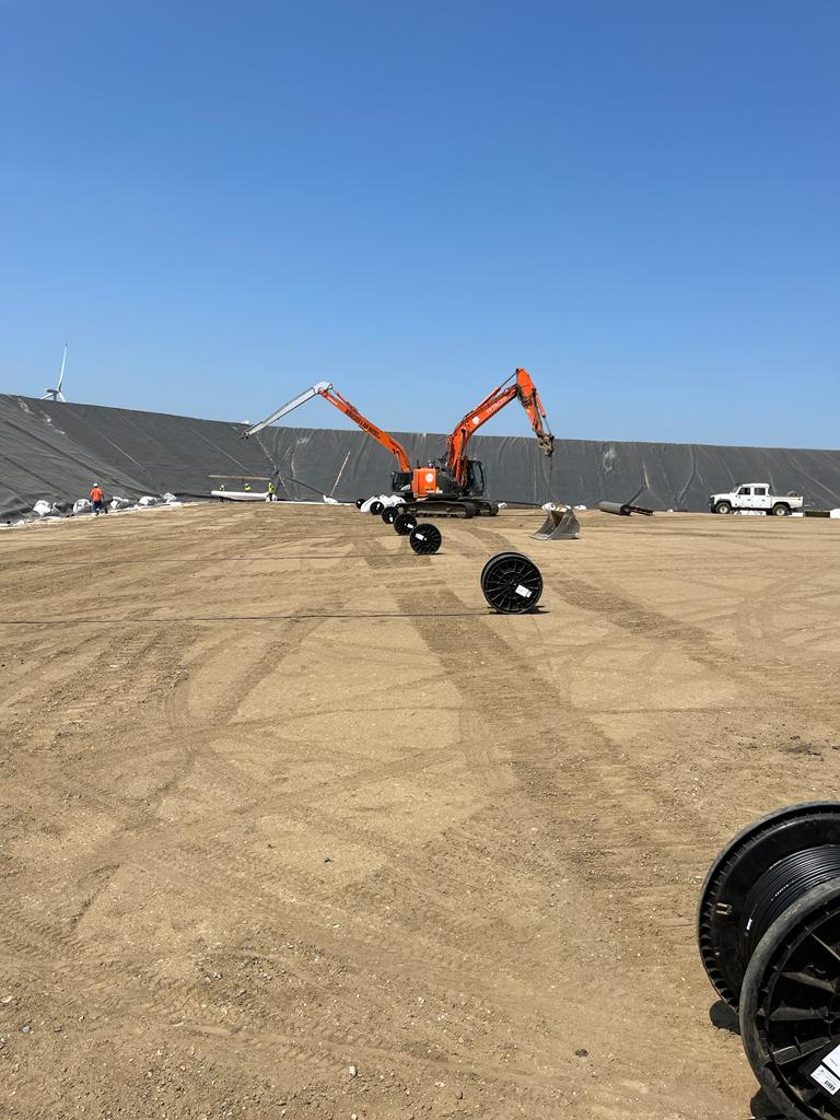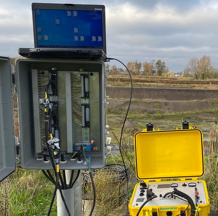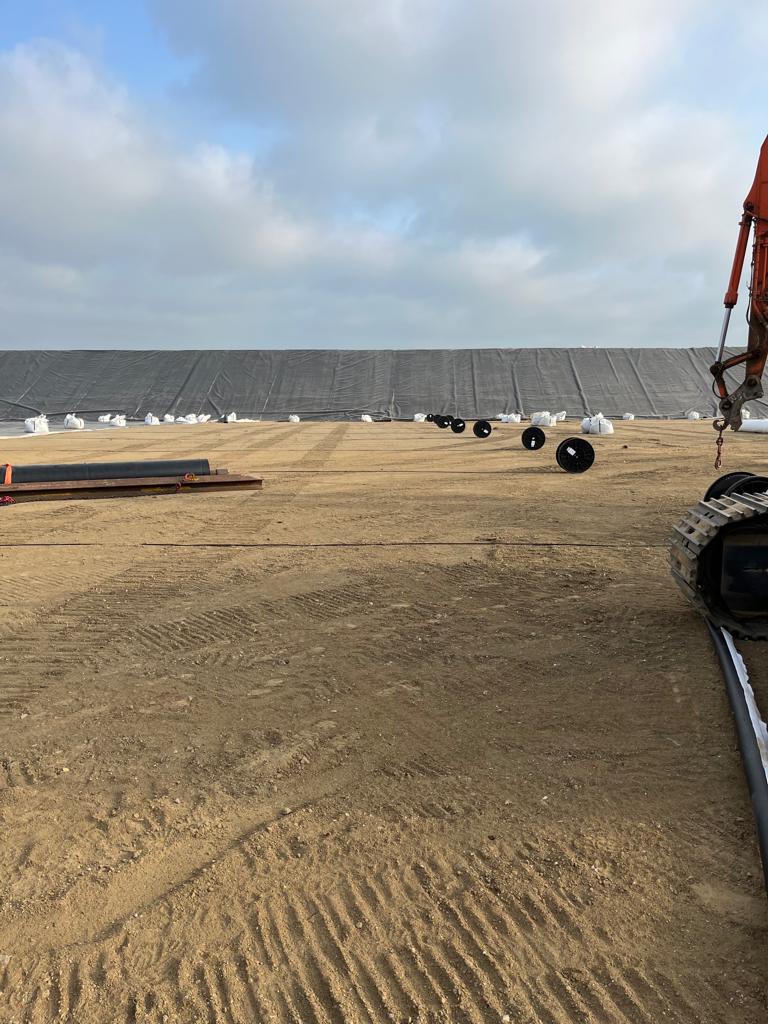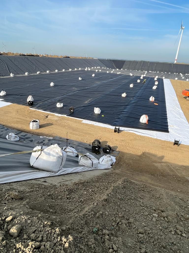 The measuring cables of the system are installed before the installation of the geo membrane. These are unrolled in parallel at intervals of several meters.