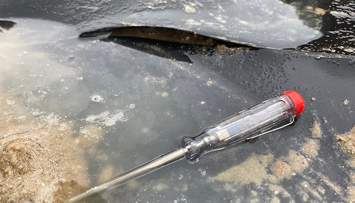 Mobile leakage detection is also an electrical method that utilizes the electrically insulating properties of the plastic sealing membrane. During the measurement, the electrical contact formed