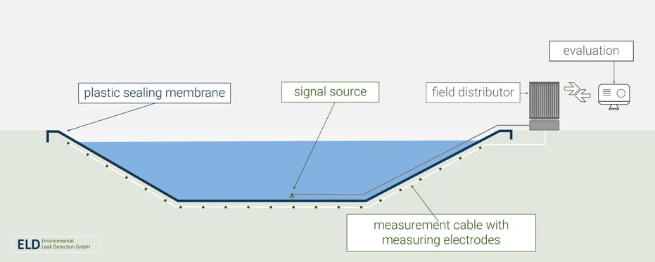 It is an electrical measurement method. An electrical signal is generated on one side of the geomembrane, while a measurement is simultaneously conducted on the other side. Since the geomembrane itself is electrically insulating, the signal can only be detected on the measurement side in case of damage.